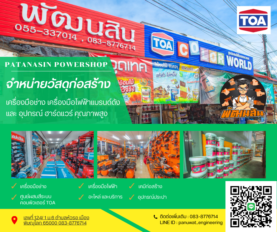 ยินดีต้อนรับทุกท่านสู่ ร้านพัฒนสิน พาวเวอร์ช็อปไทยแลนด์ ร้านค้าออนไลน์จำหน่ายเครื่องมือก่อสร้าง และ อุปกรณ์ฮาร์ดแวร์แบรนด์ดังคุณภาพสูง พร้อมจำหน่ายอะไหล่และบริการอื่นๆ ด้วยประสบการณ์การขายมากกว่า 15 ปี ทำให้เรามีความรู้และความชำนาญ ในการขายสินค้าประเภทนี้เป็นอย่างดี บริการให้คำปรึกษาฟรี