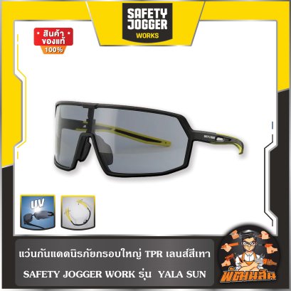แว่นกันแดดนิรภัยกรอบใหญ่ TRP ป้องกันรังสี UV และแรงกระแทก เลนส์สีเทา SAFETY JOGGER WORK รุ่น YALA SUN