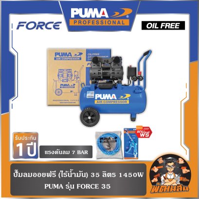 ปั๊มลมออยฟรี 35 ลิตร 1450W PUMA รุ่น FORCE 35 เสียงเงียบ