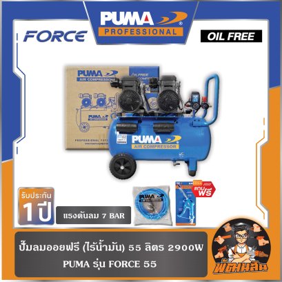 ปั๊มลมออยฟรี 55 ลิตร 2900W PUMA รุ่น FORCE 55 เสียงเงียบ