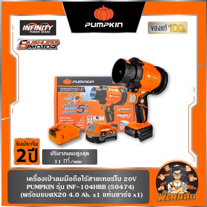 (ครบชุดปรับ 2 ระดับ)เครื่องเป่าลมร้อนไร้สาย 20V INF-255CHG-401K-X20 PUMPKIN (50455) แบต 4.0Ah x 1 ก้อน