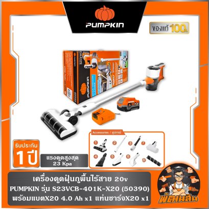 (ครบชุด) เครื่องดูดฝุ่นถูพื้นไร้สาย INF-S23VCB-401K-X20 PUMPKIN (50390)