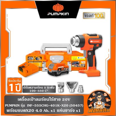 (ครบชุด 5 ระดับ)) เครื่องเป่าลมร้อนไร้สาย 20V INF-555CHG-401K-X20 PUMPKIN (50457) แบต 4.0Ah x 1 ก้อน