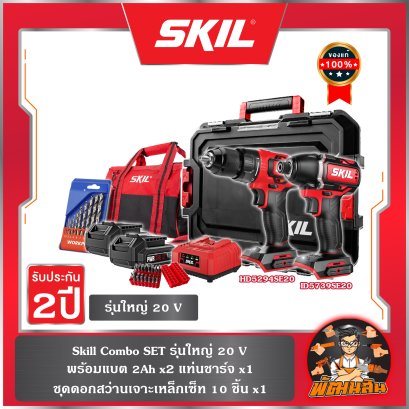 Combo Set รุ่นใหญ่ 20 V ไขควงกระแทกไร้สายไร้แปรงถ่าน +สว่านไฟฟ้าไร้สาย (แบต 2.0Ah = 2 ก้อน)