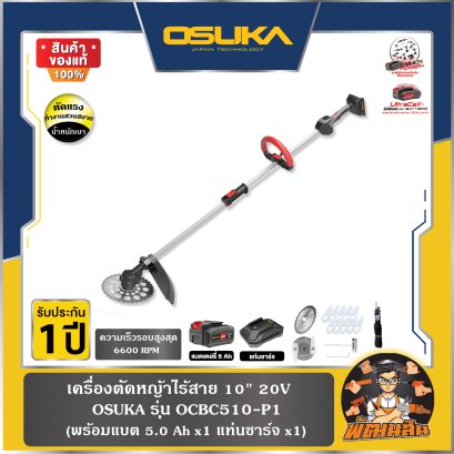 เครื่องตัดหญ้าไร้สาย 10" 20V OCBC510-P1 OSUKA (แบต 5.0Ah=1 ก้อน)