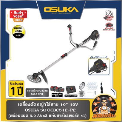 เครื่องตัดหญ้าไร้สาย 10" 40V (แบตคู่) OCBC512-P2 OSUKA (แบต 5.0Ah=2 ก้อน)