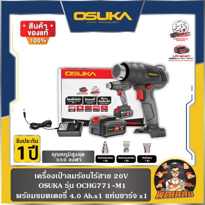 เครื่องตัดหญ้าไร้สาย 20V OCBC513-M1 OSUKA (แบต 4.0Ah=1 ก้อน) ,หัวต่อตัดแต่งพุ่ม , หัวเลื่อยโซ่