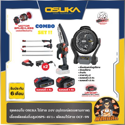 ชุดคอมโบ OSUKA ไร้สาย 20V เลื่อยตัดกิ่งสูง OSPS-4V1+พัดลมไร้สาย OCF-9N