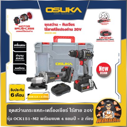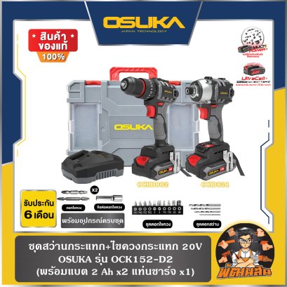 ชุดสว่านกระแทก+ไขควงกระแทก 20V OCK152-D2 OSUKA (แบต 2.0Ah = 2 ก้อน)