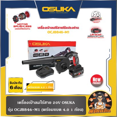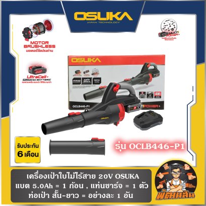 เครื่องเป่าใบไม้ไร้สาย OSUKA รุ่น OCLB446-P1 (แบตเตอรี่ 20v 5.0Ah = 1ก้อน พร้อมแท่นชาร์จ)