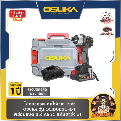 ไขควงกระแทกไร้สาย 20V OCID821U-D1 OSUKA (แบต 2.0Ah = 1 ก้อน)