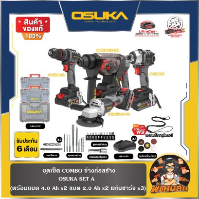 ชุดเซ็ต COMBO ช่างก่อสร้าง Osuka SET A (แบต 2.0Ah = 2 ก้อน แบต 4.0Ah = 2 ก้อน แท่นชาร์จ = 3 ชิ้น )
