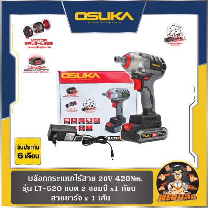 บล็อกไฟฟ้าไร้สาย ไร้แปรงถ่าน 128V รุ่น OSID-LT520 (รับประกันศูนย์ 6 เดือน)