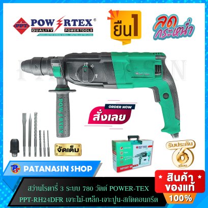 สว่านโรตารี่ 3 ระบบ 780 วัตต์ POWERTEX รุ่น PPT-RH-24DFR เจาะไม้ - เหล็ก - เจาะปูน - สกัดคอนกรีต