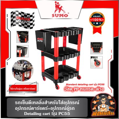 รถเข็นดีเทลลิ่งสำหรับใส่อุปกรณ์ คาร์แคร์ + อุปกรณ์อู่รถ SUMO Detailing cart รุ่น PC55