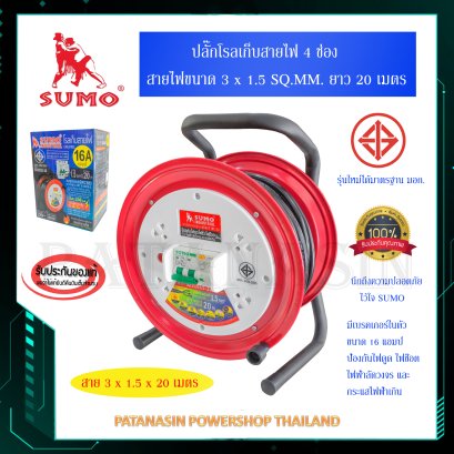 ปลั๊กโรลเก็บสายไฟ 4 ช่อง สายไฟ 3x1.5 SQ.MM. ยาว 20 เมตร และ 30 เมตร SUMO ( มี มอก. )