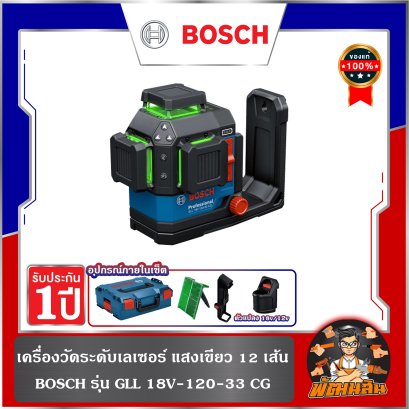 เครื่องวัดระดับเลเซอร์ แสงเขียว 12 เส้น BOSCH รุ่น GLL 18V-120-33 CG