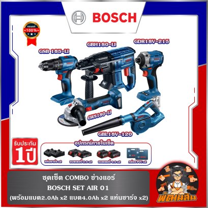 ชุดเซ็ต COMBO ช่างแอร์ 01 (GSB 185-LI+GDR 18V-215,GBH 180-LI,GWS 180-LI,GBL 18V-120)