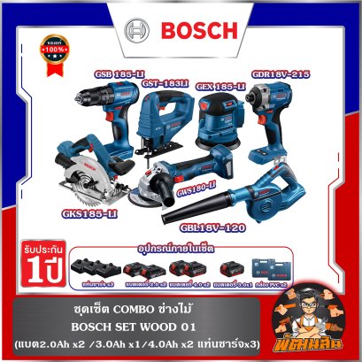 ชุดเซ็ต COMBO ช่างไม้ 01 (GSB 185-LI+GDR 18V-215,GWS 180-LI,GBL 18V-120,GEX 185-LI,GKS 185-LI,GST 183-LI,GBA18V-3.0Ah+GAL 18V-40)
