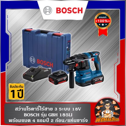 สว่านโรตารี่ไร้สายระบบ SDS PLUS BOSCH รุ่น GBH 185-LI ครบชุด และ เครื่องเปล่า ( รับประกัน 1 ปี)