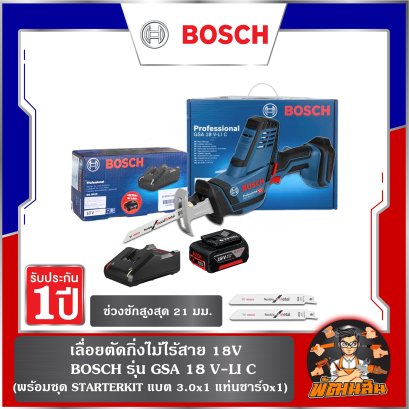 เลื่อยตัดกิ่งไม้ไร้สาย 18V BOSCH รุ่น GSA 18V-LI C+Starter Kit GBA 18V 3.0Ah + GAL 18V-40 (แบต 3.0 = 1 ก้อน แท่นชาร์จ = 1 อัน)