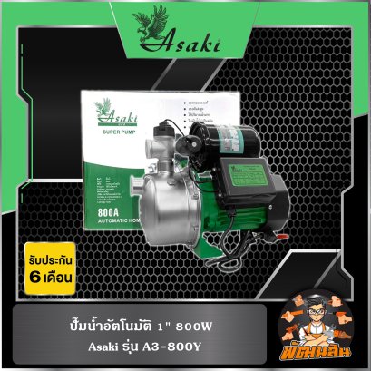 ปั๊มน้ำอัตโนมัติ 1" 800W A3-800Y ASAKI