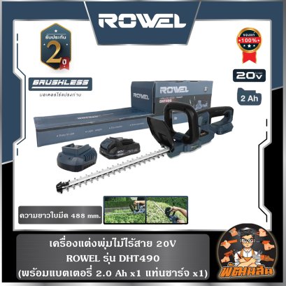 เครื่องแต่งพุ่มไม้ไร้สาย 20V DHT490 ROWEL (แบต 2.0Ahx1 ก้อน)
