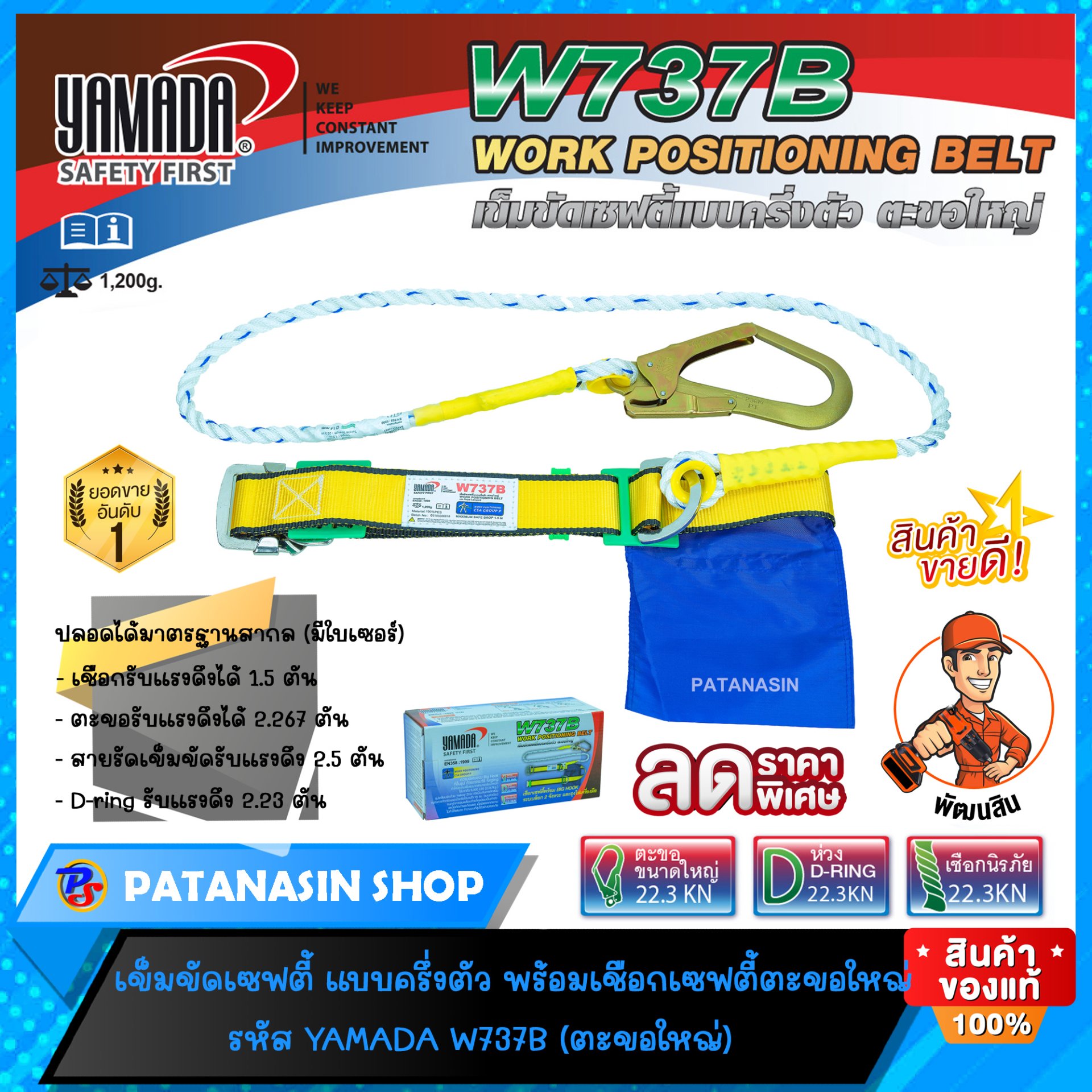เข็มขัดเซฟตี้แบบครึ่งตัว ตะขอใหญ่ YAMADA รุ่น W737B