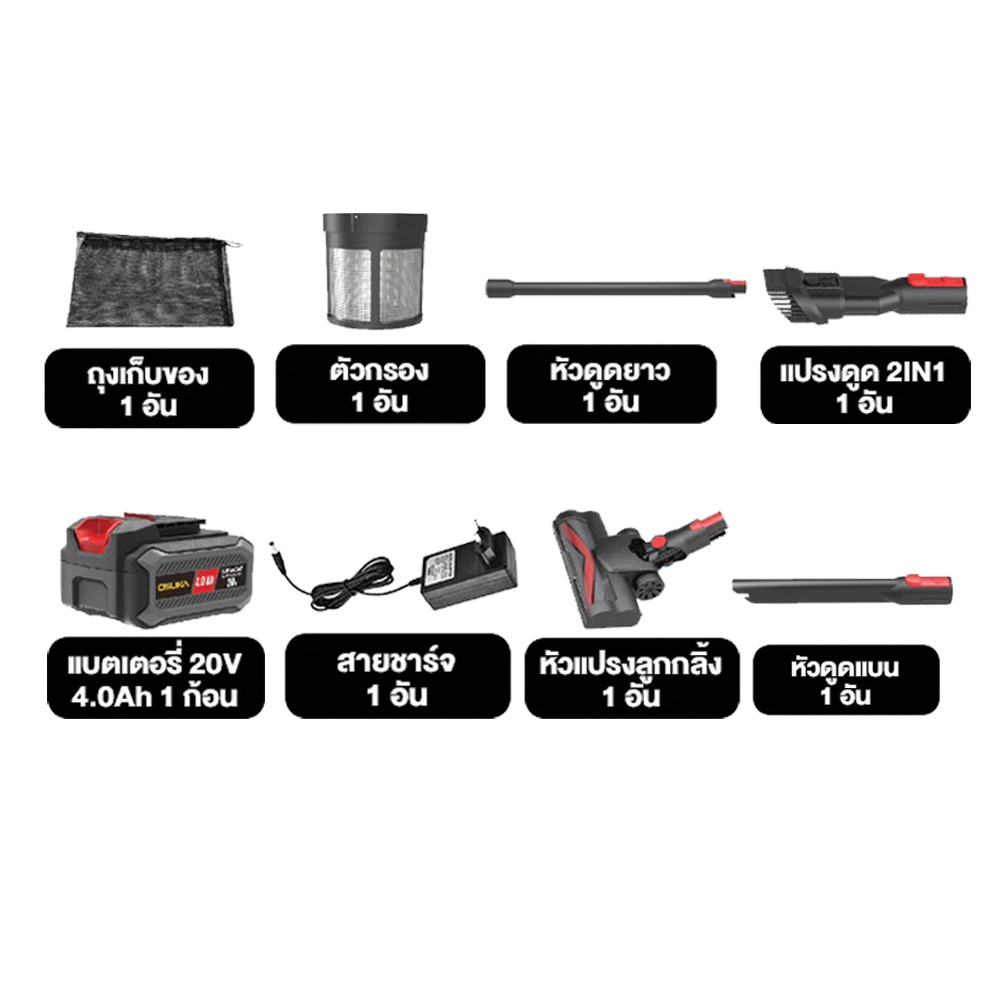 เครื่องดูดฝุ่นไร้สาย 20V รุ่นท็อป หัวดูดหมุนอัตโนมัติ OCVC782-M1 OSUKA (แบต 4.0Ah = 1 ก้อน)