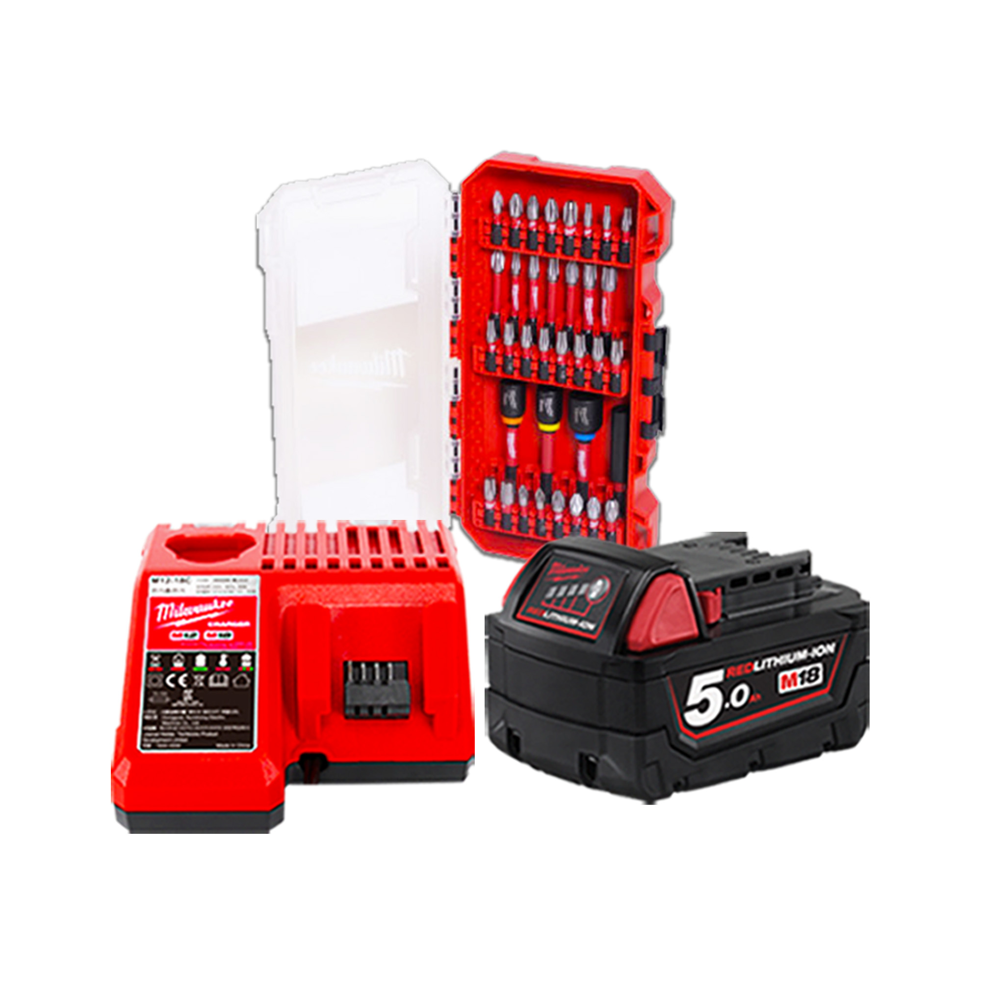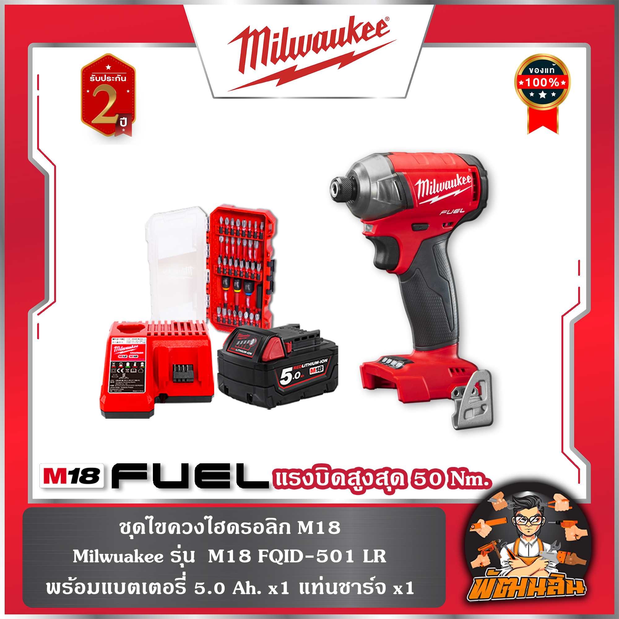 ชุดไขควงกระแทกไฮดรอลิก M18 FQID-501 LR Milwaukee (แบตเตอรี่ 5.0Ah+แท่นชาร์จ+ชุดดอกไขควง)