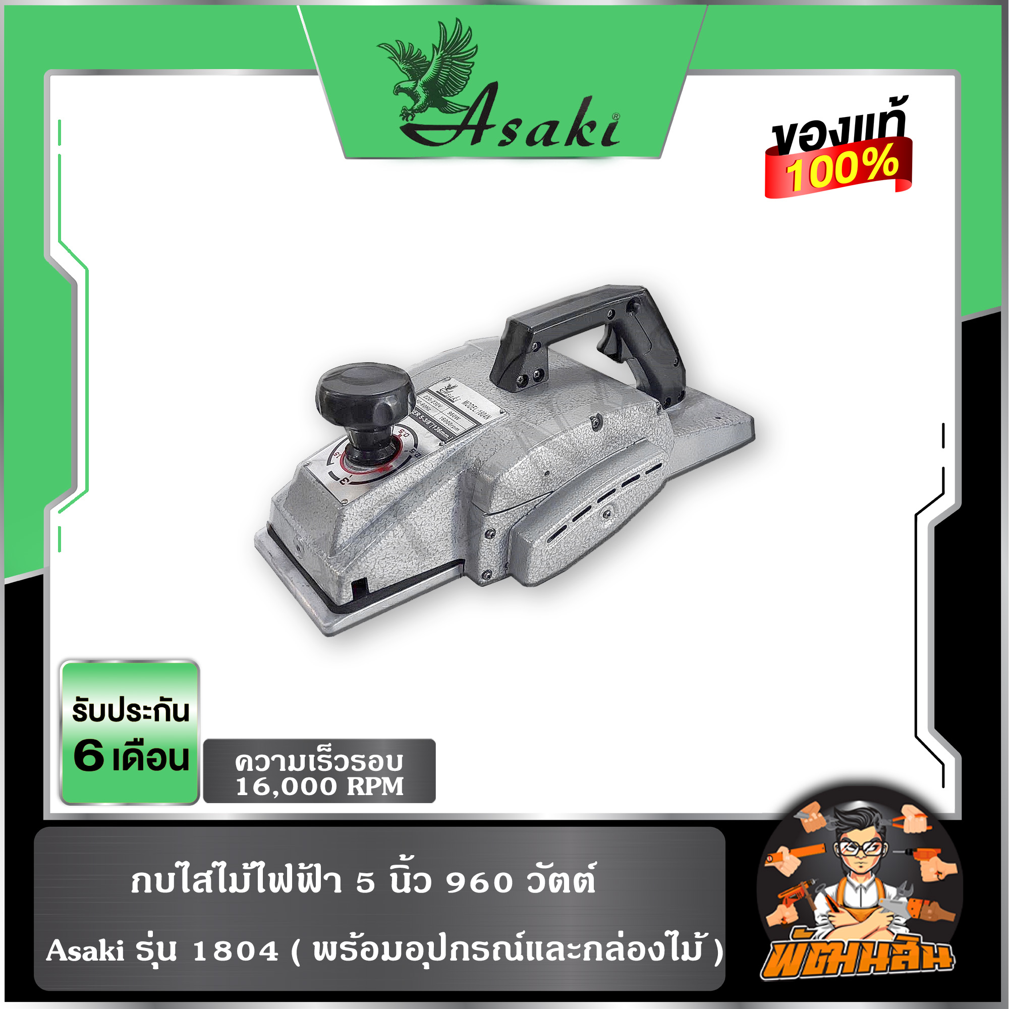 กบไสไม้ไฟฟ้า 5 นิ้ว 960 วัตต์ รุ่น 1804 ASAKI 1804 ( พร้อมอุปกรณ์และกล่องไม้ )