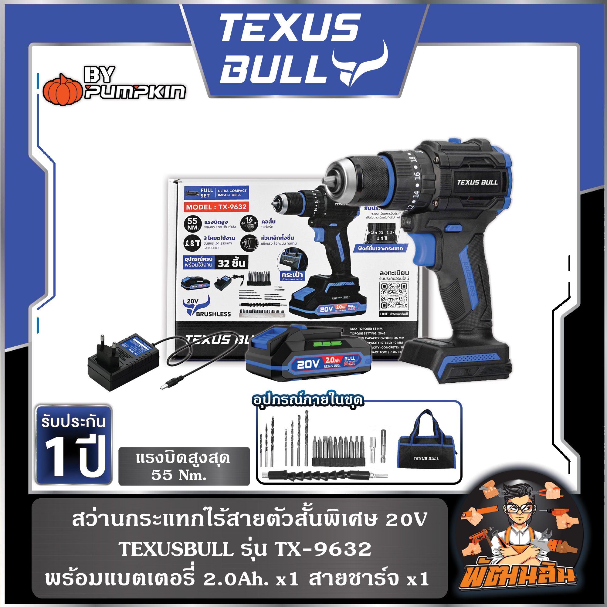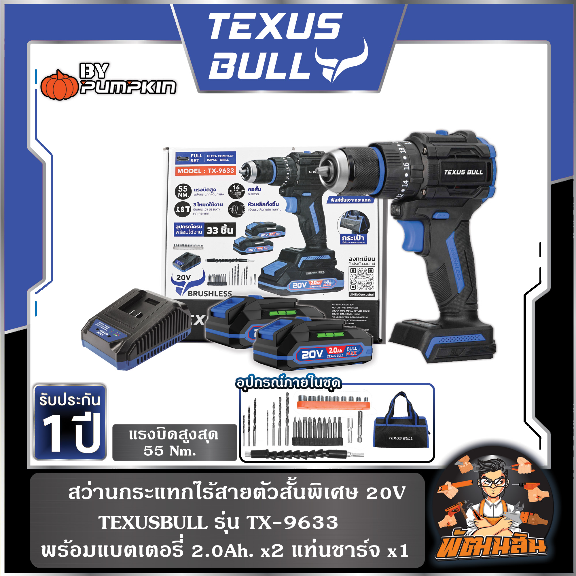สว่านกระแทกไร้สาย 20V พร้อมอุปกรณ์ 33 ชิ้น รุ่น TX-9633 (แบต 2.0Ah x 2) , ตัวเปล่า รุ่น TX-9629 (29 ชิ้น)