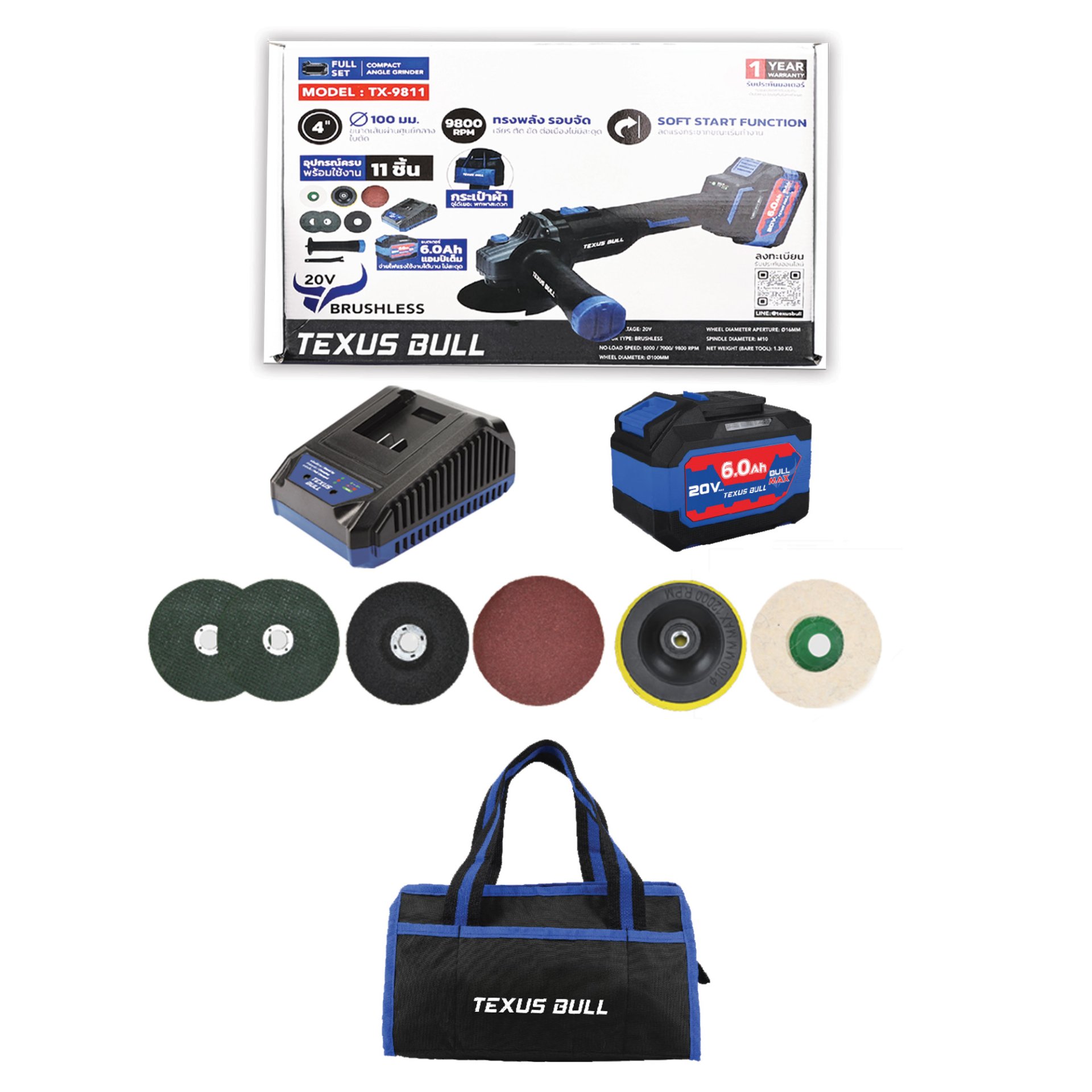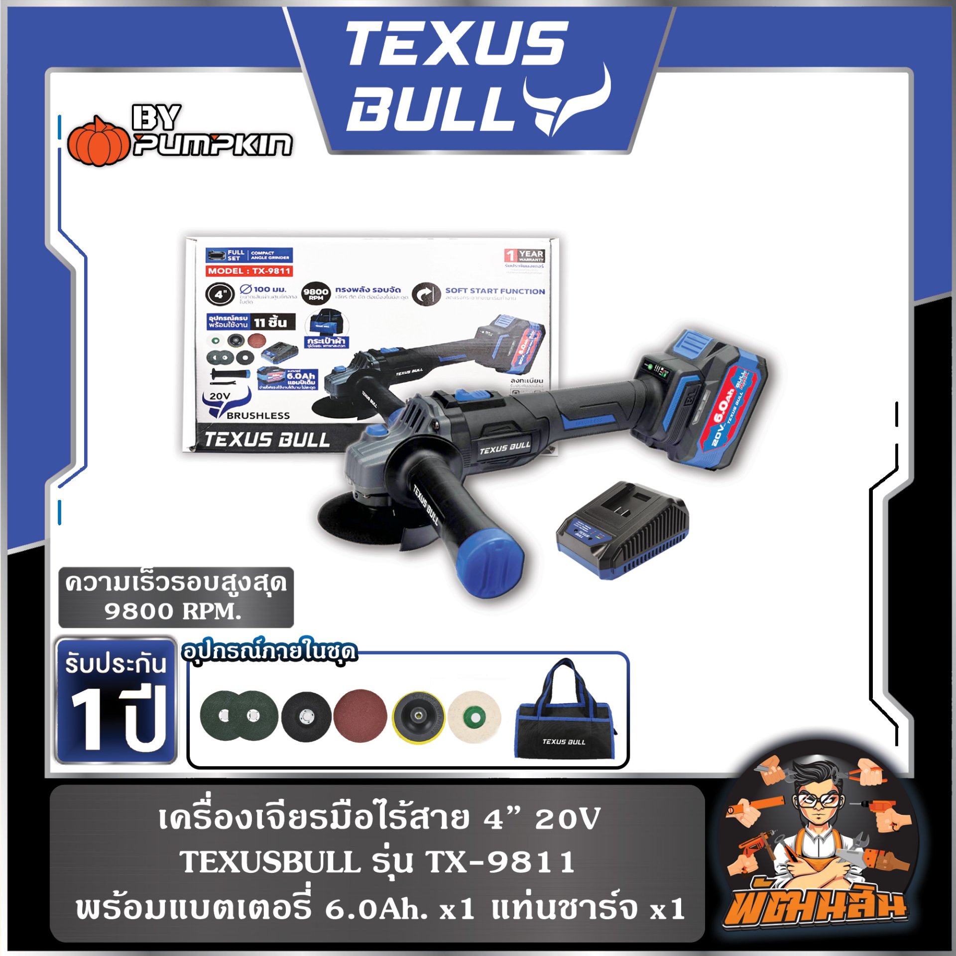 เครื่องเจียร์ไร้สาย 4" 20V TEXUS BULL รุ่น TX-9811 (แบต 6.0Ah x 1) , ตัวเปล่า รุ่น TX-9808