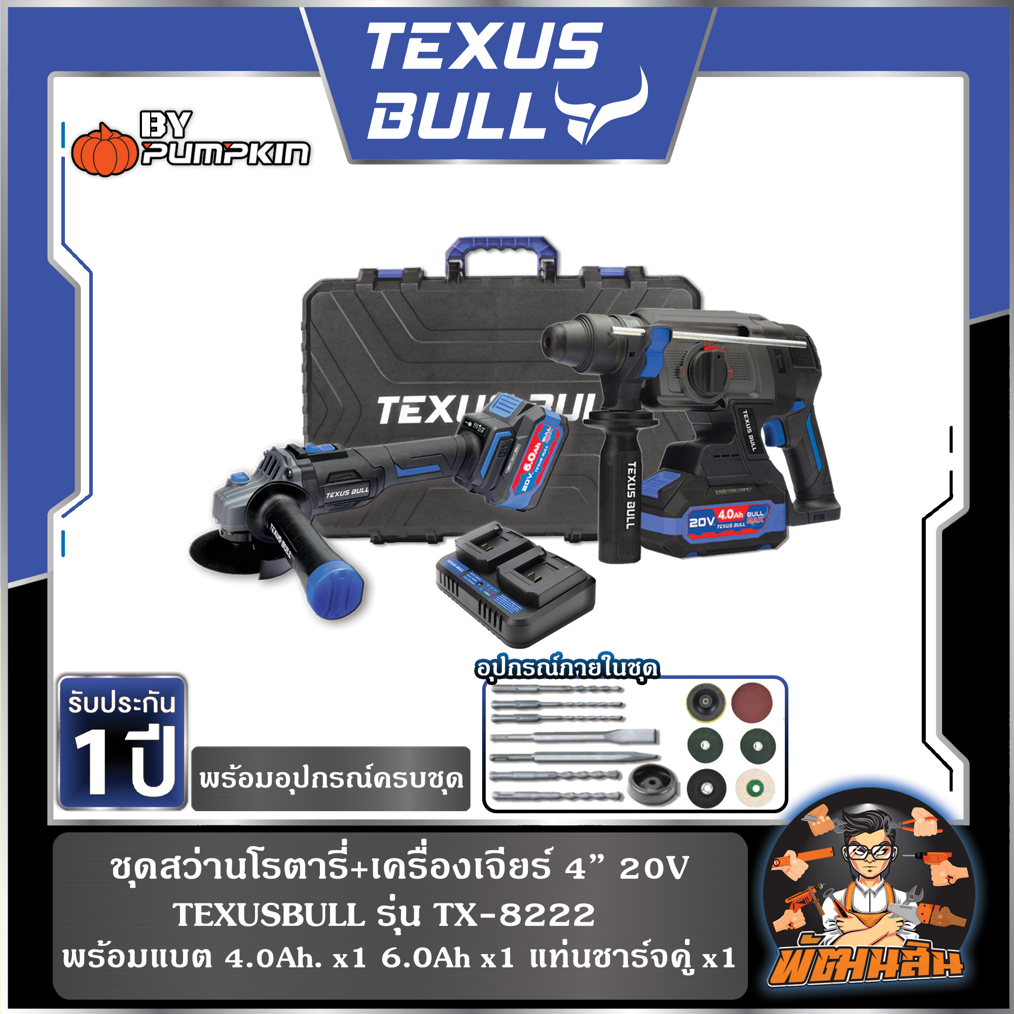ชุดสว่านโรตารี่และเครื่องเจียรไร้สาย 20V TEXUS BULL รุ่น TX-8222 (แบต 4.0Ah x 1 ก้อน,6.0Ah x 1 ก้อน)