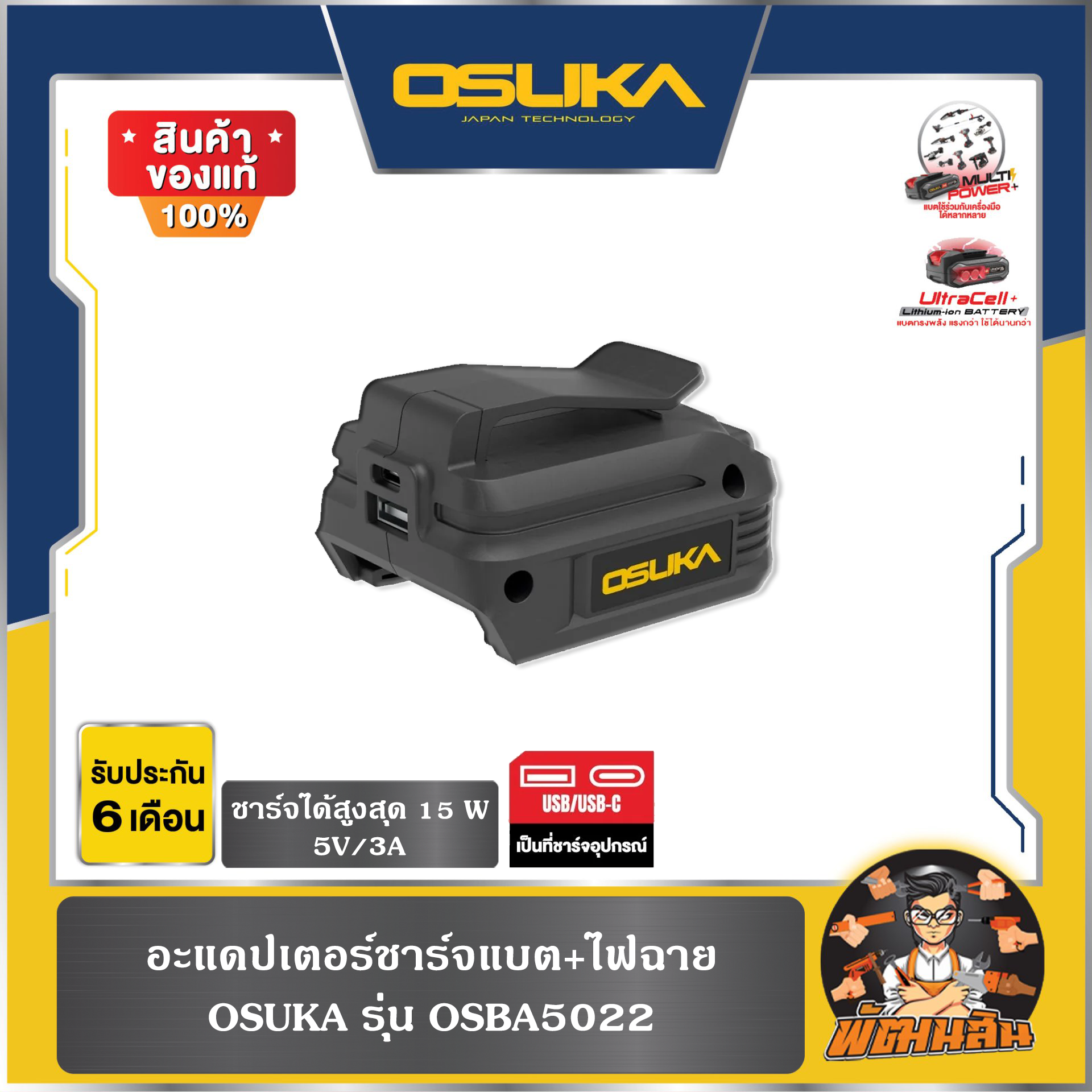 อะแดปเตอร์ชาร์จแบต+ไฟฉาย OSBA5022 OSUKA