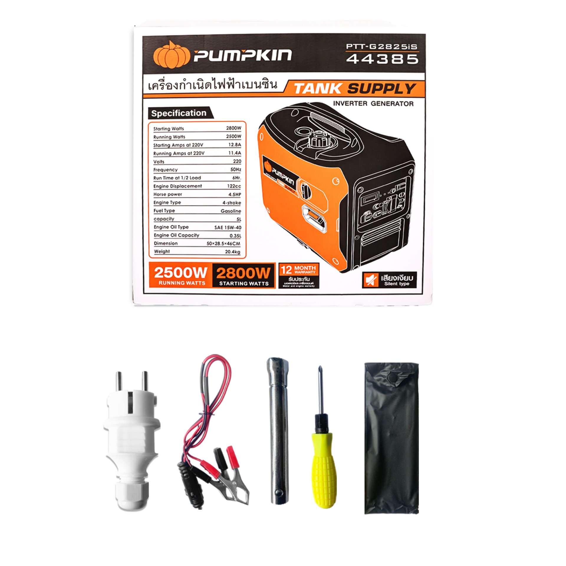 เครื่องปั่นไฟเบนซิน ระบบ INVERTER 4 จังหวะ 2.8 KW PUMPKIN รุ่น PTT-G2825iS (44385)