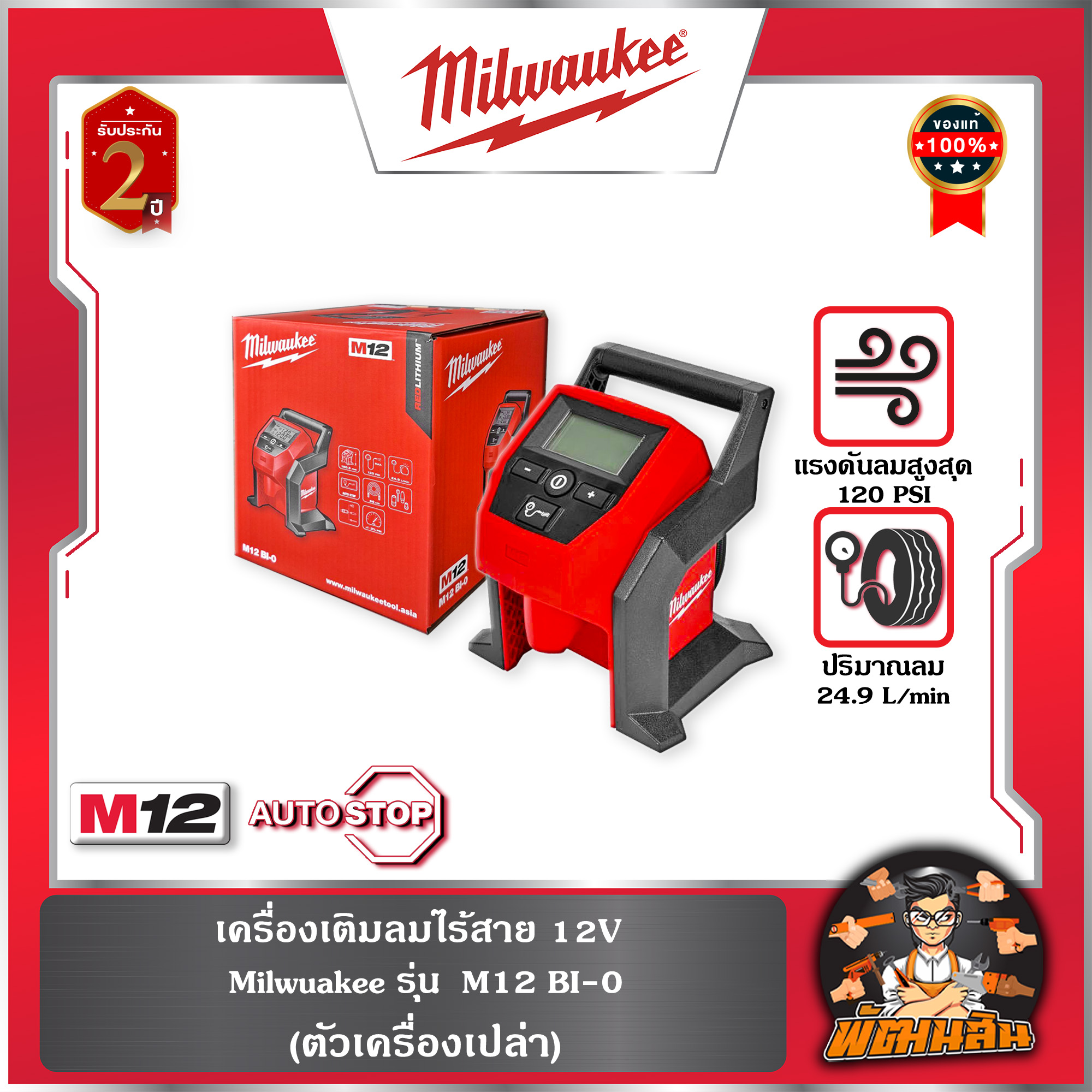 เครื่องเติมลมไร้สาย Milwaukee รุ่น M12 BI-0 (เครื่องเปล่า) Milwaukee