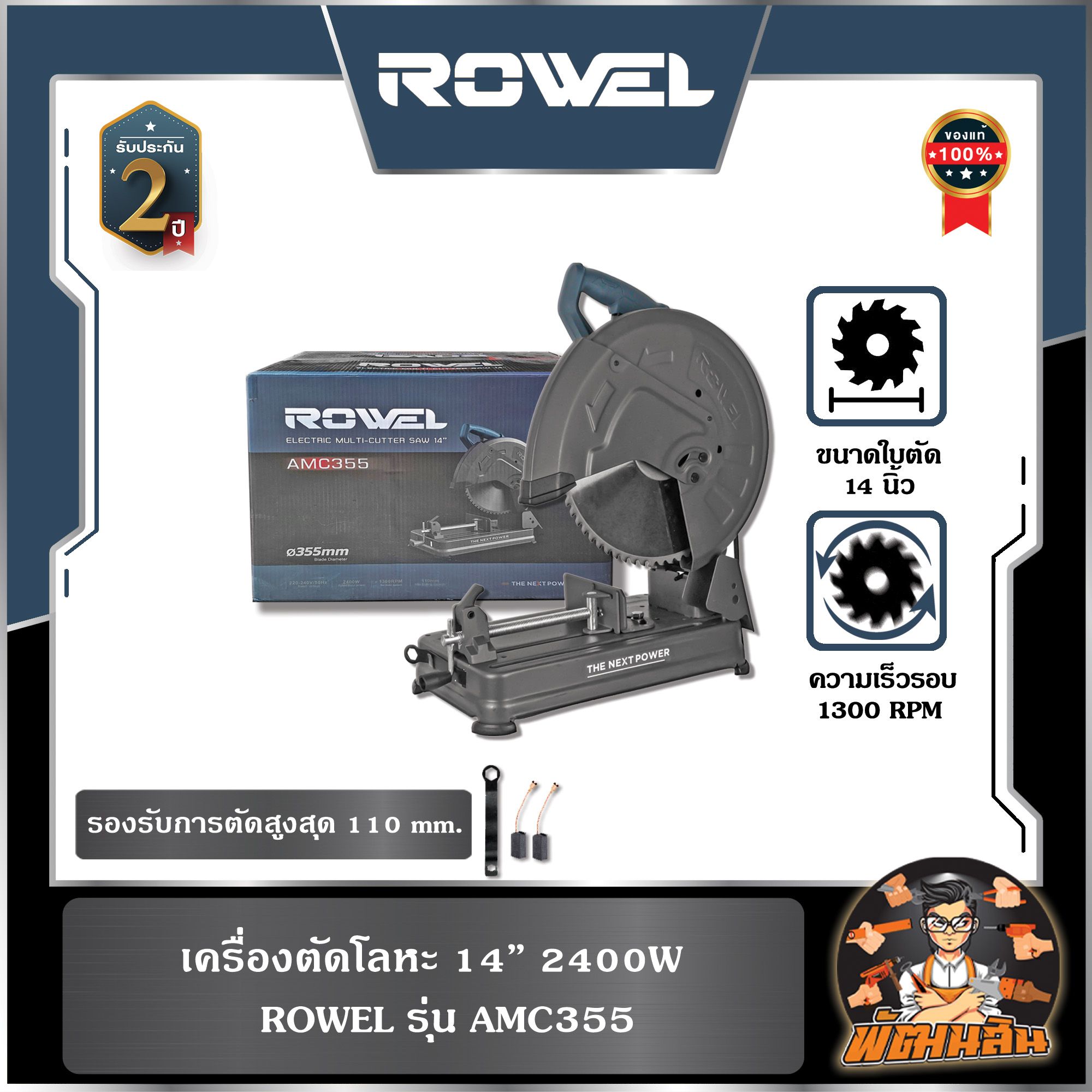 แท่นตัดเหล็ก พร้อมใบคาร์ไบด์ 14" 2400W (1300 รอบ/นาที) ROWEL AMC355