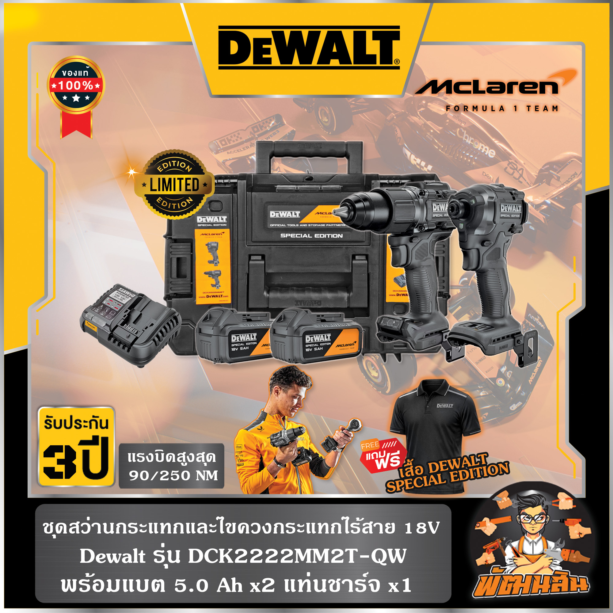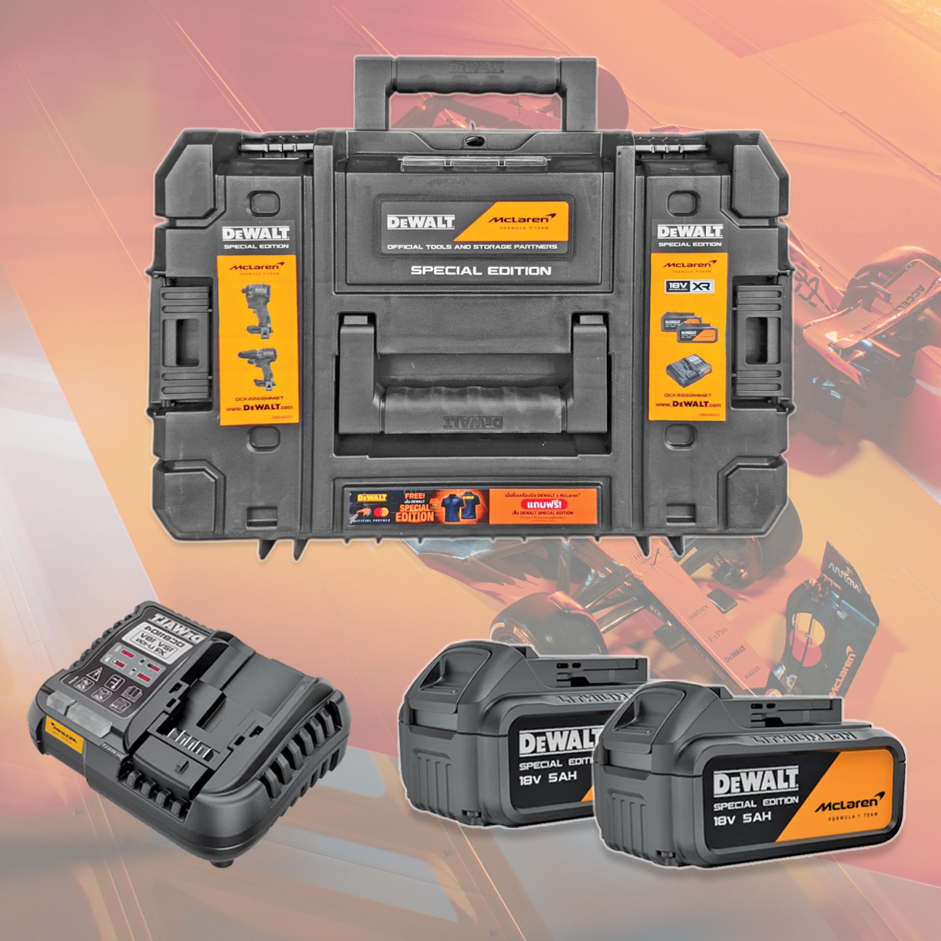 ชุดสว่านกระแทกและไขควงกระแทกไร้สาย 18V McLaren (DCK2222MM2T-QW) พร้อมแบต 5.0Ahx2 ก้อน