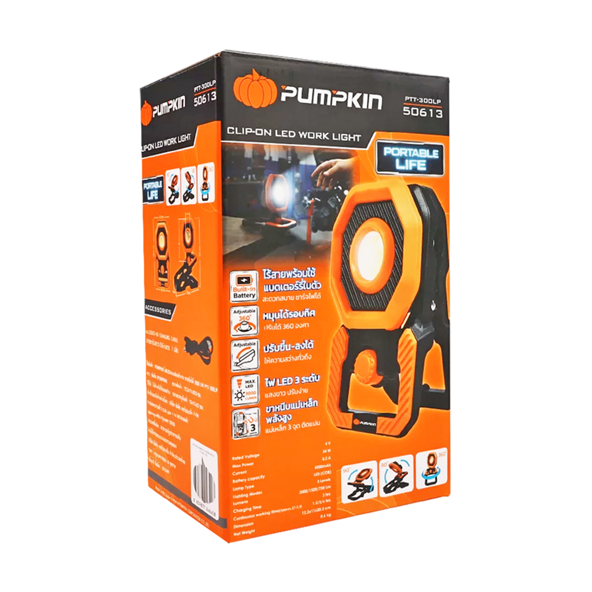 ไฟ LED แบบส่องสว่างทำงาน ขาหนีบได้ 3000LM PTT-300LP PUMPKIN (50613)