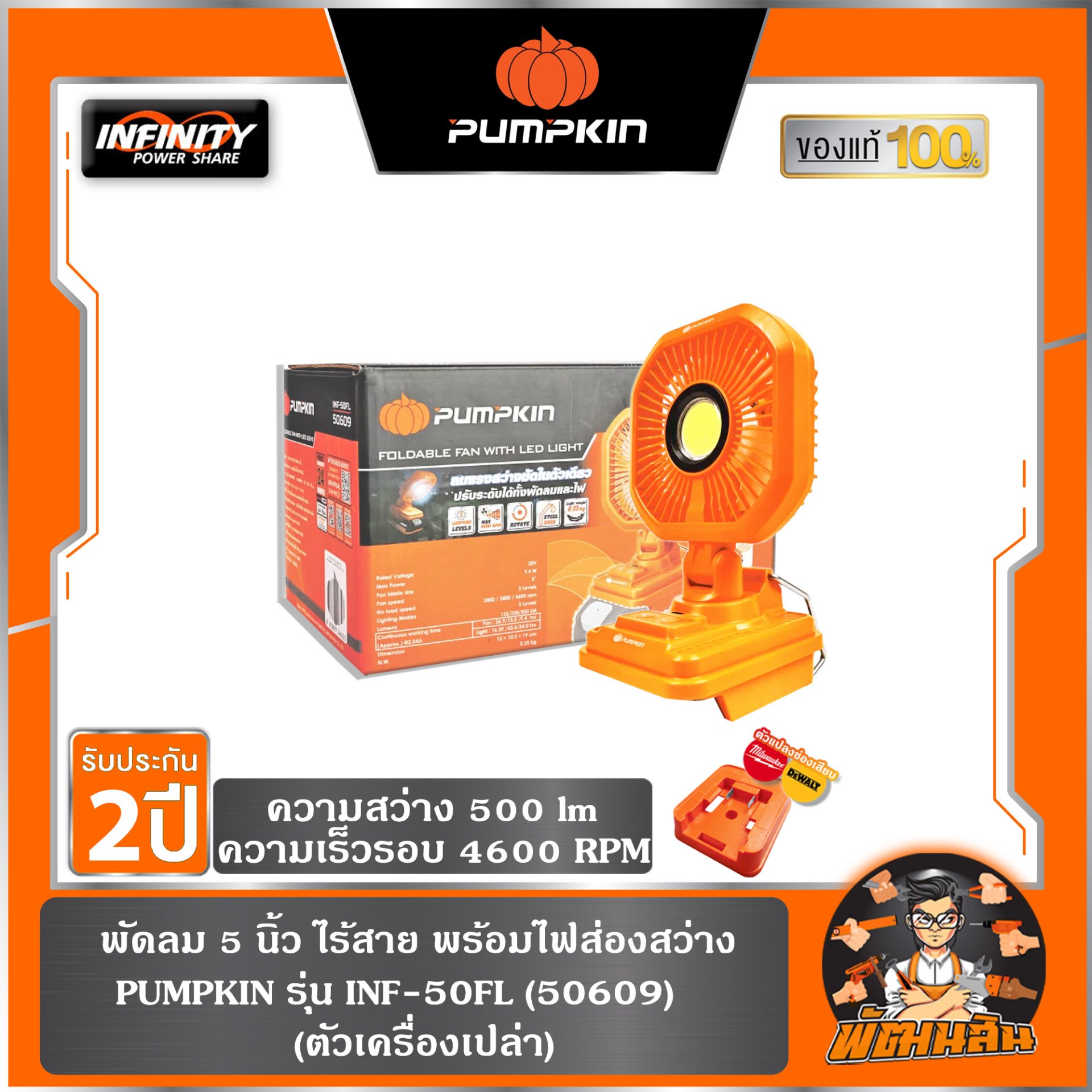 พัดลมไร้สาย 5" พร้อมไฟส่องสว่างแบบพับเก็บได้ INF-50FL2 PUMPKIN (50610) แบต 2.0Ah x1 ก้อน , ตัวเปล่า (50609)
